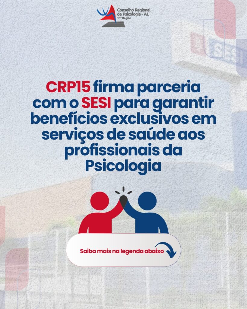 Firmamos uma parceria entre o CRP15 e o SESI – Serviço Social da Indústria, garantindo descontos exclusivos para os profissionais devidamente registrados no CRP15 e seus dependentes (pai, mãe, esposa(o), filha(o)). ✨