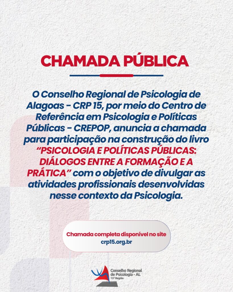📢 Participe da construção do livro “Psicologia e Políticas Públicas: Diálogos entre a Formação e a Prática”!