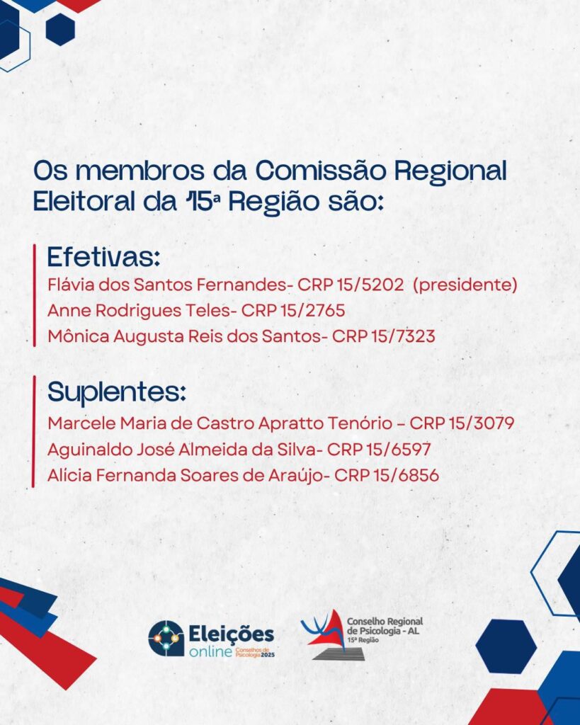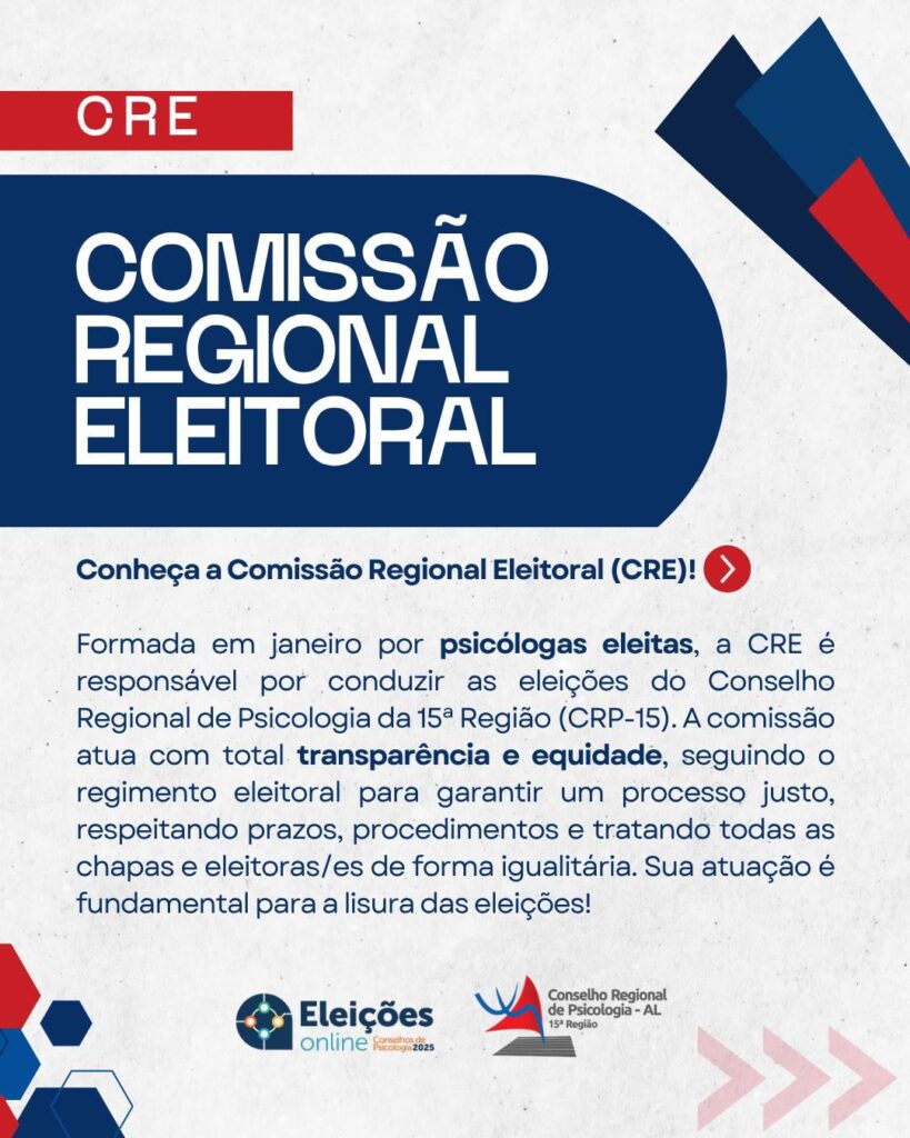 Com o início do processo eleitoral de 2025, o CRP-15 conta com a atuação da Comissão Regional Eleitoral (CRE), responsável por garantir a legalidade e a organização do pleito.