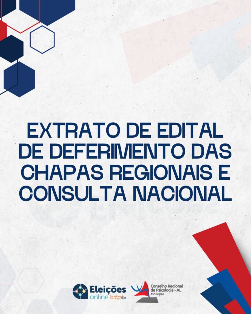 O Conselho Regional de Psicologia da 15ª Região, representado por seu Presidente, Psicólogo Leonardo Tenório Lins Pedrosa CRP15/3023, e pela Comissão Regional Eleitoral nomeada pela Portaria nº 0032-2024, torna público o deferimento das chapas inscritas para concorrerem às eleições para as representantes deste Conselho, gestão 2025-2028, em conformidade com a Lei nº 5.766/71 e a Resolução CFP nº 005/2021.