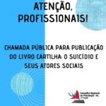 CHAMADA PÚBLICA PARA PUBLICAÇÃO DO LIVRO CARTILHA: O SUICÍDIO E SEUS ATORES SOCIAIS O Conselho Regional de Psicologia de Alagoas (CRP-15) deseja elaborar uma coletânea de textos que reportem ações … Continue lendo