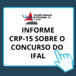 Com o intuito de tirar as dúvidas de Psicólogas(os) que pretendem fazer o concurso do Instituto Federal de Alagoas (IFAL), o Conselho Regional de Psicologia (CRP-15) informa que entrou em … Continue lendo