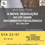 Atenção, psicólogas(os) e acadêmicas(os) de Psicologia de Arapiraca e região! A Comissão de Orientação e Ética (COE) e a Subsede do Conselho Regional de Psicologia (CRP-15) convida a todos para … Continue lendo