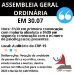 Atenção Psicólogos e Psicólogas do Estado de Alagoas: A Presidente do Conselho Regional de Psicologia da 15ª Região, com jurisdição no Estado de Alagoas e de acordo com a … Continue lendo