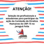 Reforçando sobre o minicurso! Que tal participar? A Comissão de Direitos Humanos do CRP-15 convida Psicólogas(os) e estudantes para um minicurso e uma ação social educativa sobre a Política de … Continue lendo