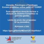 Enviem propostas online para o 8° COREP. Suas sugestões deverão nortear a atuação do Sistema Conselhos na próxima gestão. Limite de envio das propostas: 30 de novembro. Acessem o … Continue lendo