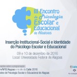 O Núcleo de Psicologia Escolar e Educacional de Alagoas (NPEE-AL) estará realizando nos dias 09 e 10 de dezembro o III Encontro de Psicologia Escolar e Educacional de Alagoas que … Continue lendo