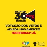 #Derruba31Já A sessão plenária que apreciaria o veto ao PL que fixa a jornada de 30 horas semanais para psicólogas e psicólogos sem redução salarial, LAMENTAVELMENTE, acaba de ser encerrada, … Continue lendo