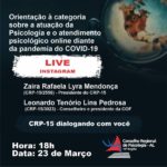 Olá, Psicólogas e Psicólogos. Nesta segunda-feira, 23, será realizada às 18h, uma LIVE no instagram do CRP-15 com a presidente do Conselho Regional de Psicologia, Zaíra Rafaela Lyra Mendonça (CRP-15/2558) … Continue lendo