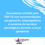 Maceió, 25 de março de 2020. Ofício Circular CRP-15 nº 001/2020 Às senhoras e senhores Gestores Públicos Empregadores de Psicólogos Usuários de serviços de Psicólogos Assunto: Recomendações sobre … Continue lendo