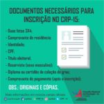 O IX Plenário do Conselho Regional de Psicologia informa que os documentos necessários para inscrição nesta autarquia são: – Duas fotos 3X4; – Comprovante de residência; – Identidade; – CPF; … Continue lendo