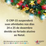 O Conselho Regional de Psicologia (CRP-15) informa que suspenderá suas atividades nos dias 24 e 25 de dezembro devido ao feriado alusivo ao Natal. Na segunda-feira (28) o atendimento será … Continue lendo