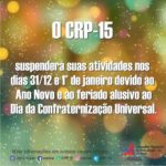 O Conselho Regional de Psicologia (CRP-15) informa que suspenderá suas atividades nos dias 31/12 e 1° de janeiro devido ao Ano Novo e ao feriado alusivo ao Dia da Confraternização … Continue lendo