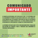 Comunicado CRP-15 sobre atendimento remoto e presencial