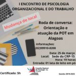 Olá, Psicólogos(as) Organizacionais e do Trabalho! A Comissão de POT do Conselho Regional de Psicologia (CRP-15) convida a todxs para o I Encontro da nova gestão 2019/2022 que será … Continue lendo