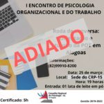Diante do avanço do novo coronavírus e da gravidade da COVID-19, a Comissão de POT decidiu adiar o seu I Encontro de Psicologia Organizacional e do Trabalho. A medida foi … Continue lendo