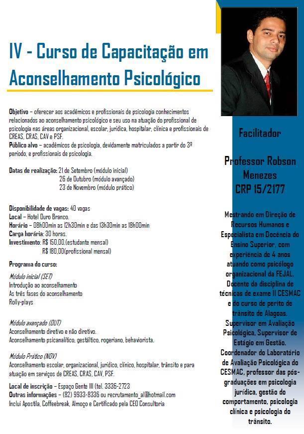 Clínica Espaço Gente III (3336-2723) / Robson Menezes (9933-8336) / recrutamento_al@hotmail.com